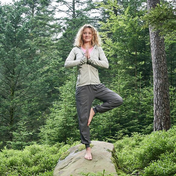 Damit ist ein Besuch im Grünen fast genauso effektiv wie Sport. Am besten also, du kombinierst Natur und Bewegung miteinander! Ob Spazieren, Joggen, Wandern, Biken oder Übungen entlang des Trimm-Dich-Pfads – wichtig ist schlicht, du bewegst dich. Jede Form von Aktivität im Wald tut gut und schenkt unserem Kopf die Stille, die er zwischendurch immer mal braucht. Ganz besonders förderlich für unsere körperliche und geistige Gesundheit sind natürlich auch Yoga und Entspannungsübungen, bei denen wir unseren Körper gezielt in die Erholung führen.